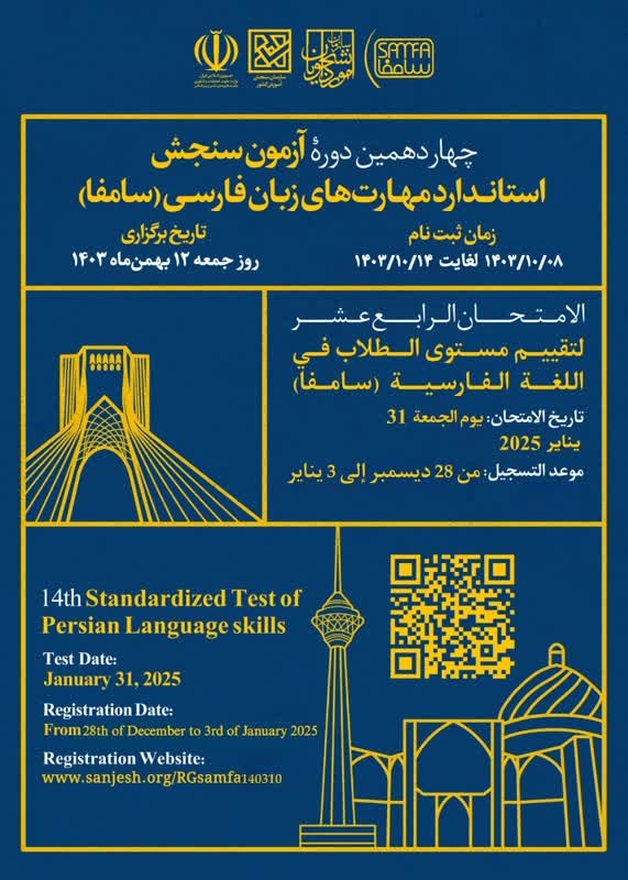 نامنویسی و برگزاری چهاردهمین آزمون سنجش استاندارد مهارتهای زبان فارسی (سامفا - سامفای دانشگاهی) سال ۱۴۰۳ آغاز شد.