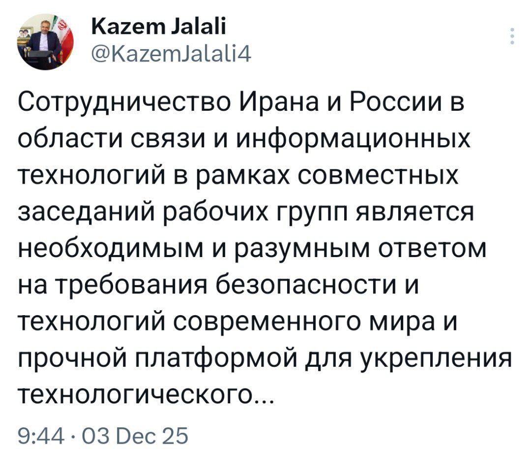 رشته توییت سفیر ج.ا.ایران در آستانه پنجمین نشست کارگروه مشترک ایران و روسیه در حوزه ارتباطات و فناوری اطلاعات