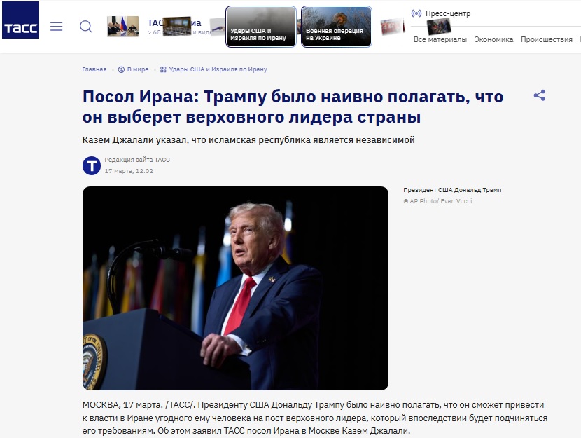 این مصاحبه ۲۷ اسفند در خبرگزاری تاس روسیه منتشر شده است.