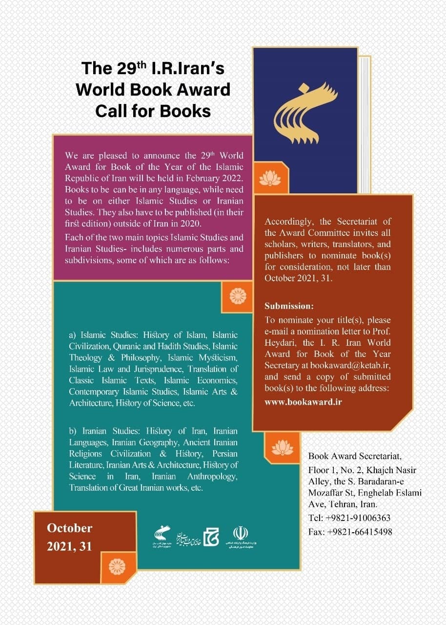 Объявление о присуждении 29-й Всемирной премии "Книга года Исламской Республики Иран"